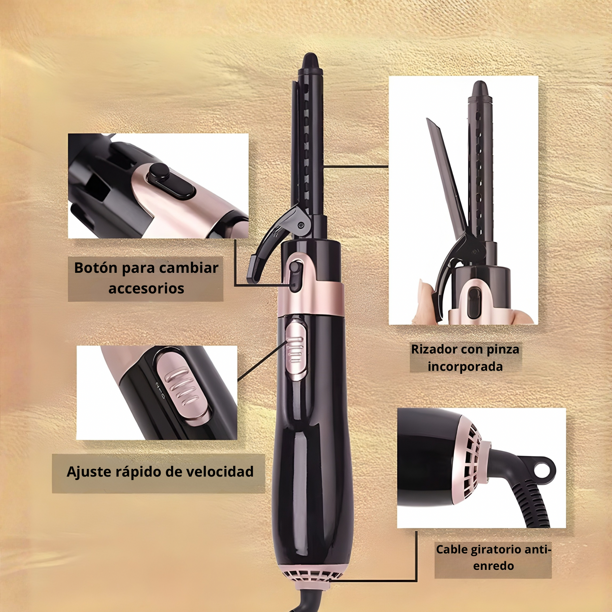rizado, alaciado, secado premium y estilizado en un solo dispositivo