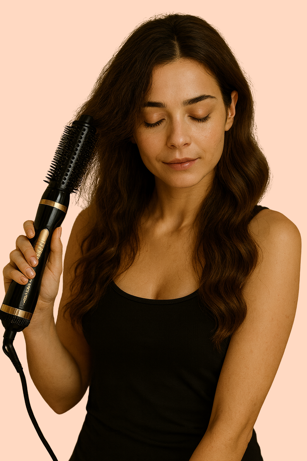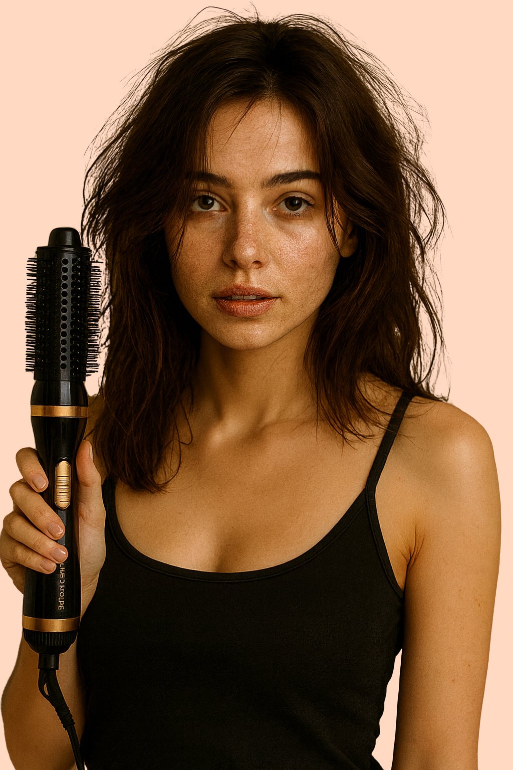 Asegúrate de que el cabello esté 80% seco y aplica protector térmico para evitar daño y frizz antes de usar el cepillo.