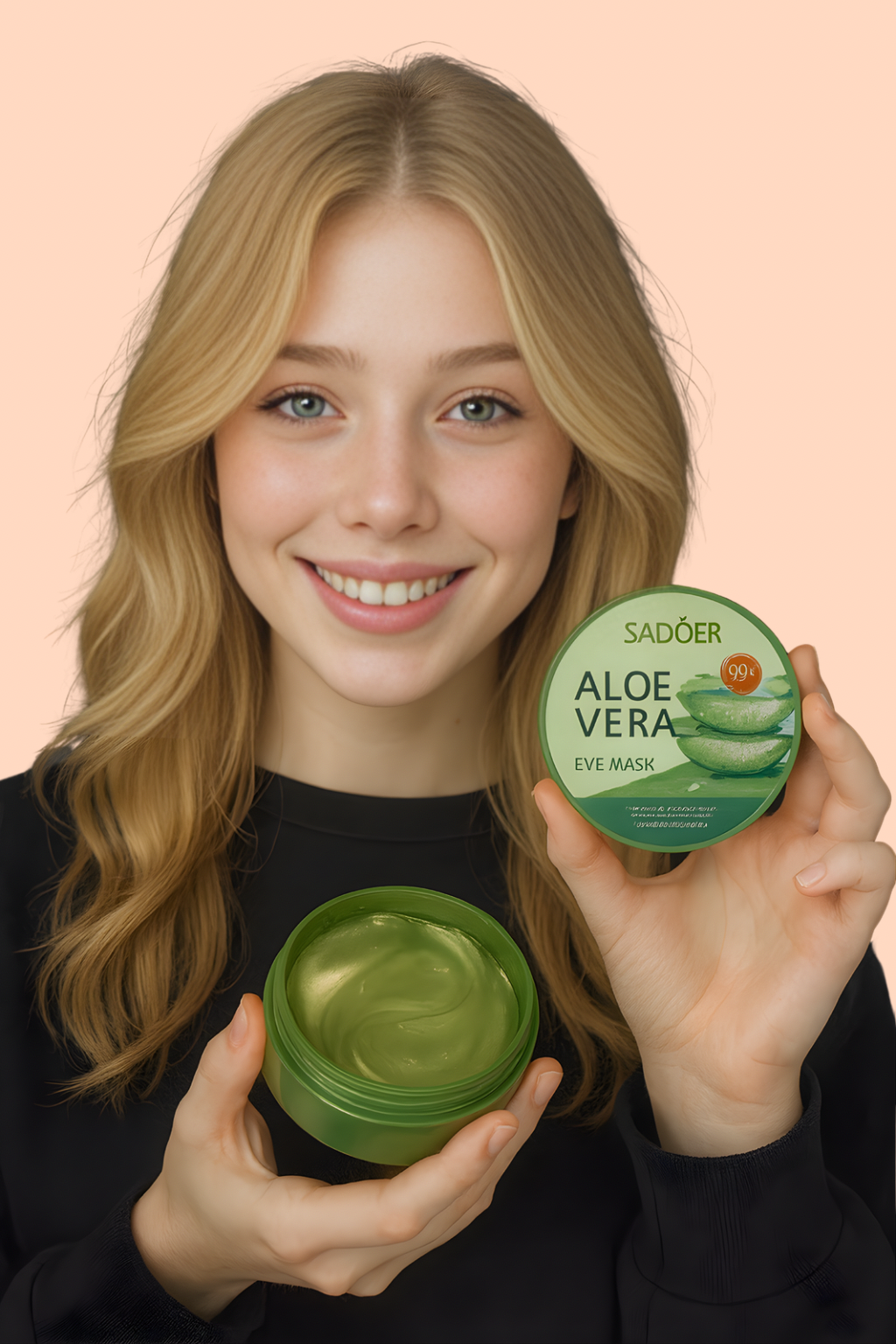 Limpia tu rostro con agua tibia y sécalo suavemente. Una piel limpia permite que el aloe vera y el colágeno se absorban mejor, potenciando su efecto descongestionante y reafirmante